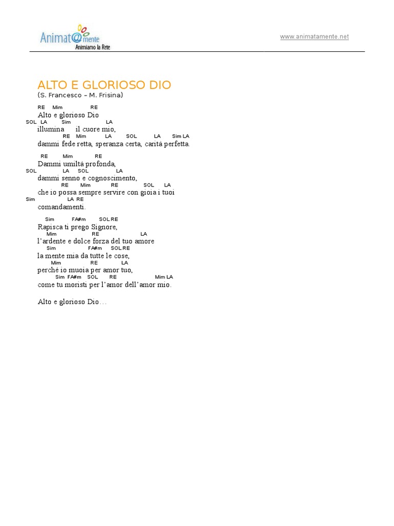 Alto E Glorioso Dio Testo Mp3 Accordi Spartiti Animatamente