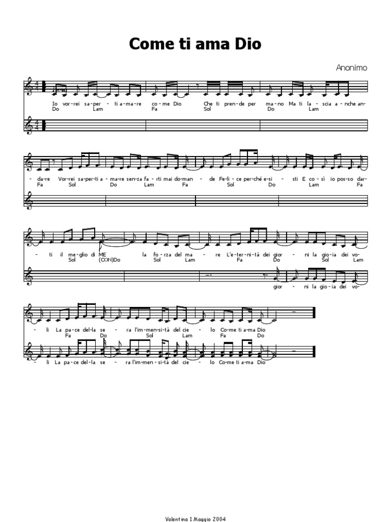 Canti Religiosi Come Ti Ama Dio Trascrizione Melodia Spartito