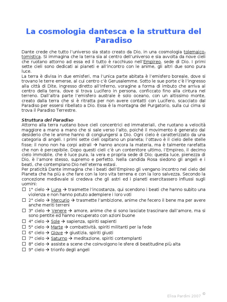 La Cosmologia Dantesca E La Struttura Del Paradiso