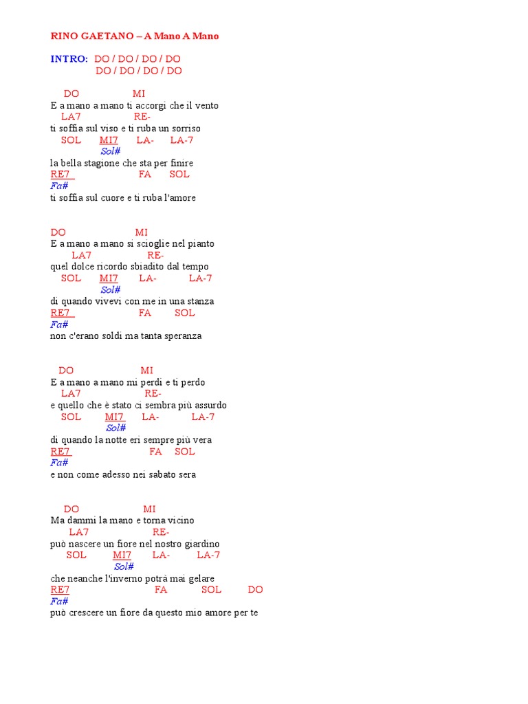 A Mano A Mano Di Riccardo Cocciante Chords Chordify